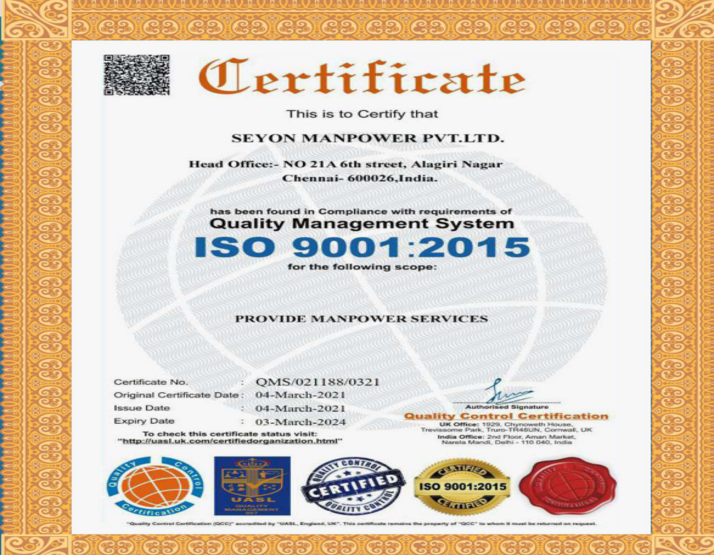ISO CERTIFIED MANPOWER AGENCY - ISO 9001:2015